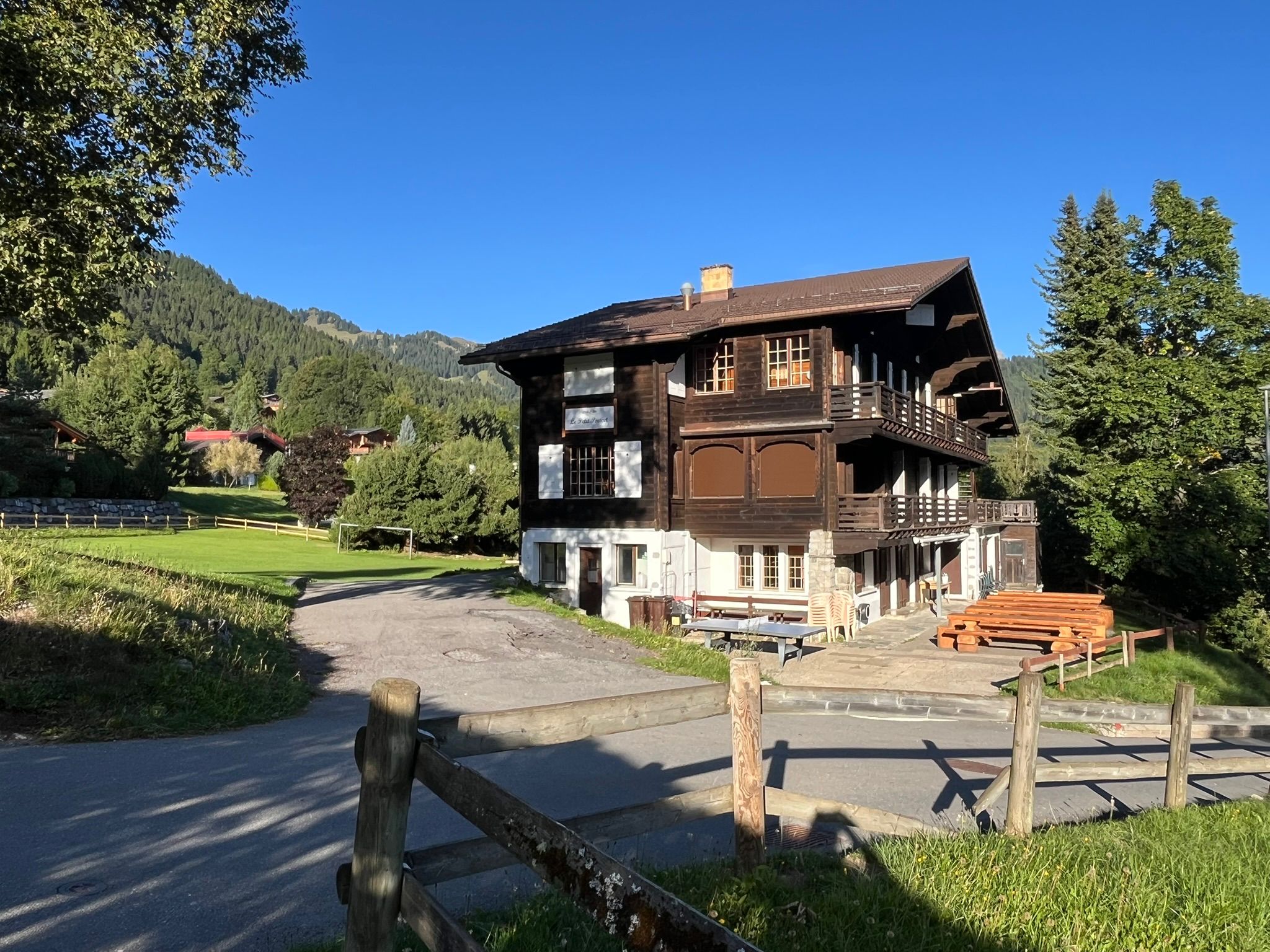 A 800m du village, notre centre de vacances « Le Petit Poucet » accueille vos enfants dans de douillettes chambres de 3 à 6 lits équipées de duvets nordiques. Un espace de jeux de 5’000 m2 comprenant un terrain de foot, de volley, ainsi que des places de jeux et d’agrès, permet à chacun de s’ébattre en toute sécurité. A l’intérieur, salles de jeux (ping-pong, baby-foot, fléchettes) matériel de projection, mini-disco, bibliothèque et piano sont autant d’alternatives pour une semaine sportive.